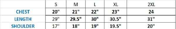 • 2XL: 20.0 (Shoulder), 24.0 (Chest), null (Waist), 31.0 (Length)